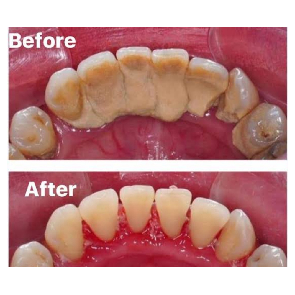 Removal of stains, plaque and calculus (the white and yellow hard deposits that accumulates on the teeth which cannot be removed by routine brushing. Polishing gives a smooth, shiny surface.